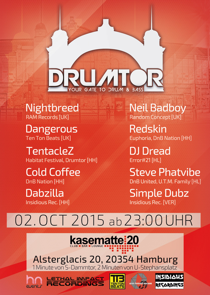 Abgerundet wird das Line Up am 02.10. durch verschiedenste Gratulanten aus der norddeutschen Drum & Bass-Szene. Das vollständige Lineup der Drumtor #8 findet ihr hier.