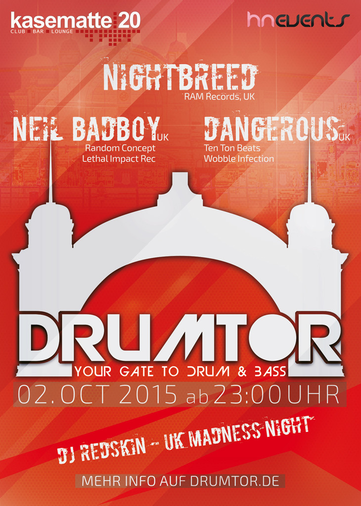 Am 02. Oktober bassen wir nicht nur mit euch in die Einheit, sondern zu Ehren Redskins Jahres-Tages lassen sich auch ein paar wohl gewählte Vertreter aus dem Mutterland des DnB nicht lumpen und kommen mit einer geballten Ladung Bass-Gewitter in die dunklen Gewölbe der Kasematte 20.